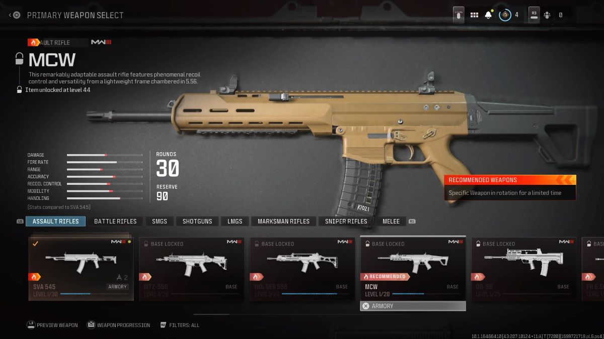 In the current meta, the MCW is one of the most powerful weapons in players’ arsenal. This is for not only its good recoil control, but also how heavy it hits. As such, having the MCW will turn you into a strong, yet efficient, soldier in battle. Upgrades on your MCW should focus on enhancing its range and accuracy further. Players unlock this gun at level 44.