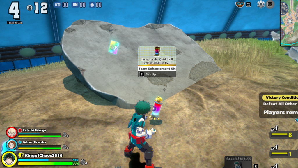 - Perhaps the most coveted item on the battlefield of My Hero Ultra Rumble is the Team Enhancement Kit. While it may look like just a fancier health or shield potion, it is much more than that. It will raise the Quirk Skill Level of all allies by one point. While this upgrade may not sound like much, such a broad upgrade across your team’s arsenal can amount to a huge advantage in battle.