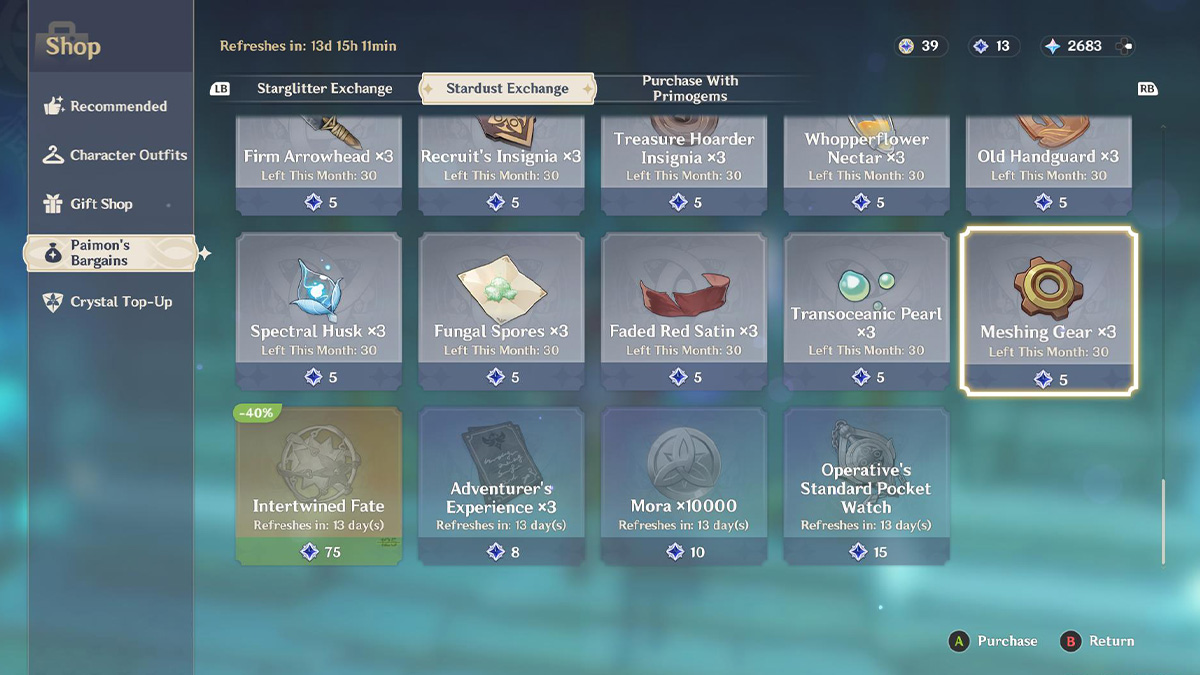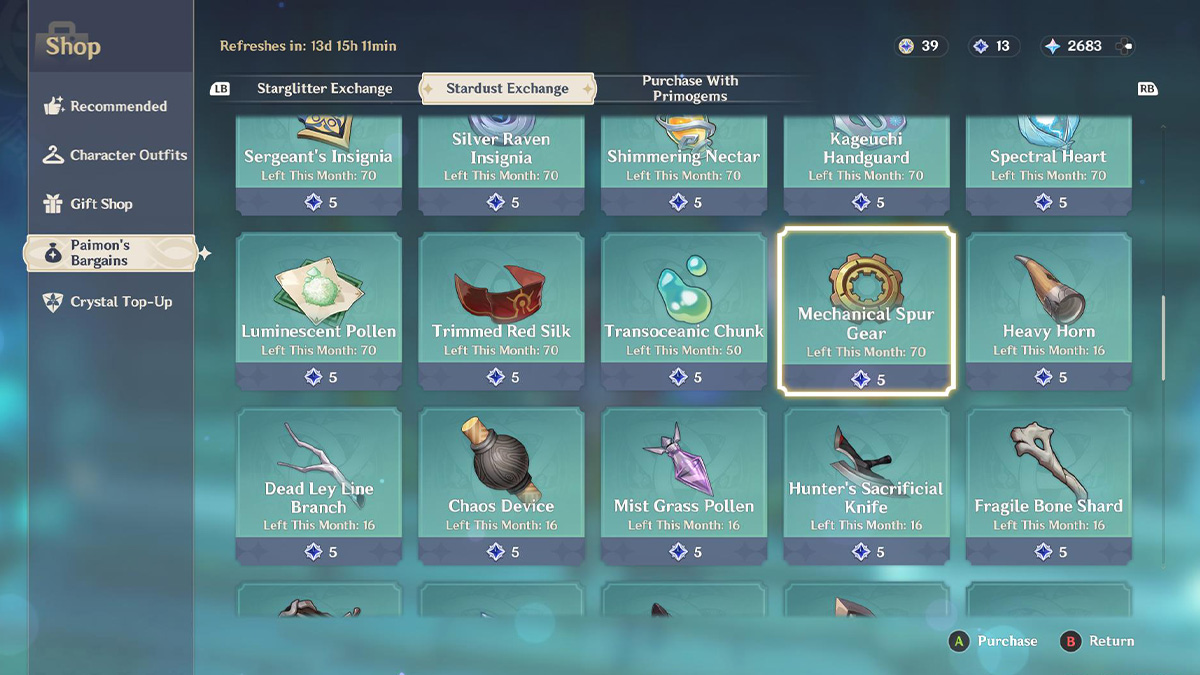 You can purchase the Meshing Gear Ascension Material in Paimon’s Bargain shop for 5 stardust. The Mechanical Spur Gear can also be picked up for the same price. However, the store limits how many items you can buy per month. To access the storefront, pause your game and click the “Shop” menu icon. The Wriothesley Ascension Material can be found in the Stardust Exchange tab in Paimon’s Bargains.