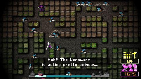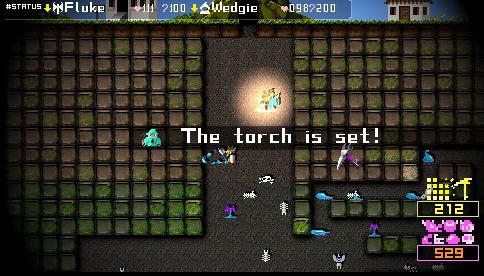 This peaceful interlude doesn’t last long. Soon Badman will warn you that heroes are approaching the dungeon. You then have 15 seconds to do some last minute preparation. Once the hero is at the gate, you choose where to place Badman’s throne in the fresh dungeon. Pick wisely – you can’t move him again until the hero is defeated. Then the hero comes in and searches for Badman. You can’t directly interact with the hero(es) or Badman, but you can continue to effect the dungeon. You can mine new monsters, or dig at mushrooms to enrich surrounding soil so new monsters can be cultivated.