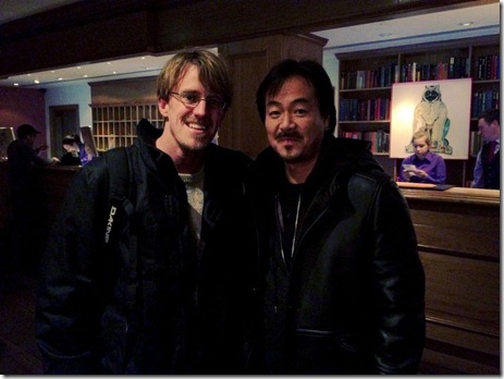 Hironobu Sakaguchi is presently in Europe, working with Nintendo of Europe to promote The Last Story. This week, he’s in London, doing interviews for the game and attending the British Academy of Film and Television Arts (BAFTA) awards. What games has he been working on, though? Japanese blog, Games Jouhou, reports that Sakaguchi’s been working on iOS games. He’s got three of them in development, to be precise. Sakaguchi shared the news in reply to a fan over Twitter. Note that this doesn’t mean he isn’t working on anything else, or that he won’t be working on console games in the future. Just that he’s working on iOS titles for the moment. Sakaguchi tweeted the image above today. That’s him with Andy Jones, the animation director for Final Fantasy: The Spirits Within. Jones coincidentally happened to be in London at the same time on some business.