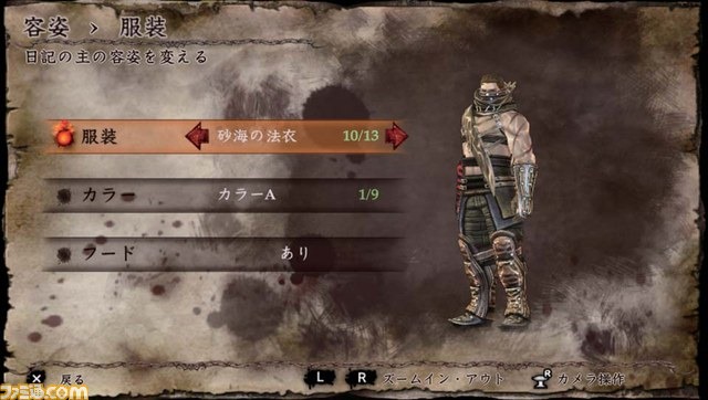 Comcept gives players options in Soul Sacrifice. You can select your sorcerer’s gender, skin color, voice, hair style, visage, and clothes. Soul Sacrifice has different colors for each clothing design too so you can be sure that it was your wizard that died for the group during a boss fight.