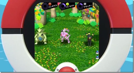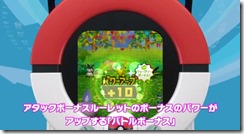 The battle bonus will give you a roulette chance of doing extra damage and you can do even more damage if you’re playing with two players by having one person mash the side buttons while the other spins the dial. By damaging the opposing Pokémon, the gauges shown on the top part of the screen fills up, which increases your chances of being able to capture them. The game ends when either side no longer has any Pokémon left standing, or if three turns go by.