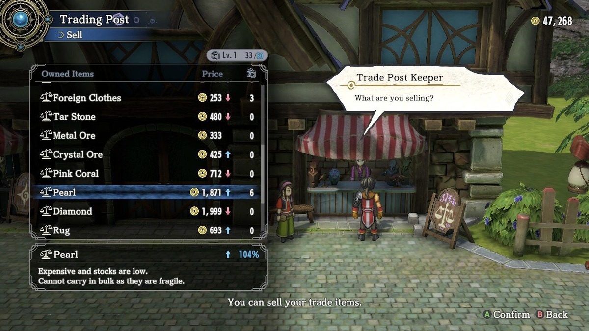 Making money fast in this game comes down to one specific part of the title: the trading post. Trading posts are available in many of the large towns and settlements throughout the world this nostalgic JRPG. They are essential to making a lot of cash, but they are tricky. How it works is each trading post in every town has a different rate for various items.