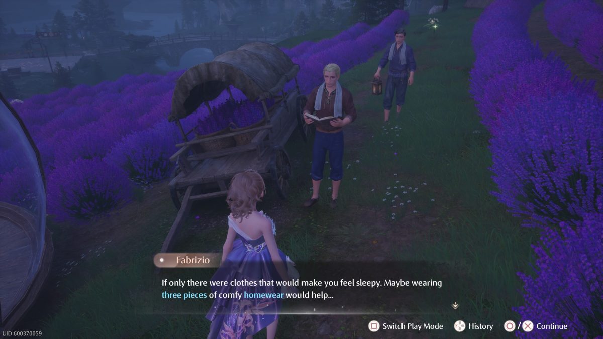 To do Goodnight Signal, you need to find the NPC Fabrizio in Stoneville. You can find this NPC just south of the Lavenfringe Fields Warp Spire in the town. Speak with Fabrizio and he will let you know that he needs to sleep. As such, he wants to see at least three pieces of comfy homewear that would help him fall asleep.