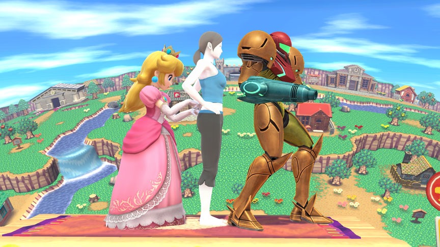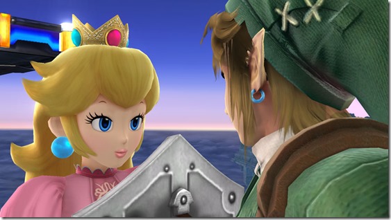 The latest batch of Super Smash Bros. screenshots Wii U and Nintendo 3DS have an assortment of amusing scenes, from an upside-down Link to Peach jumping onto Samus’ back to— hey, what’s with that look Peach is giving Link in that one screen?