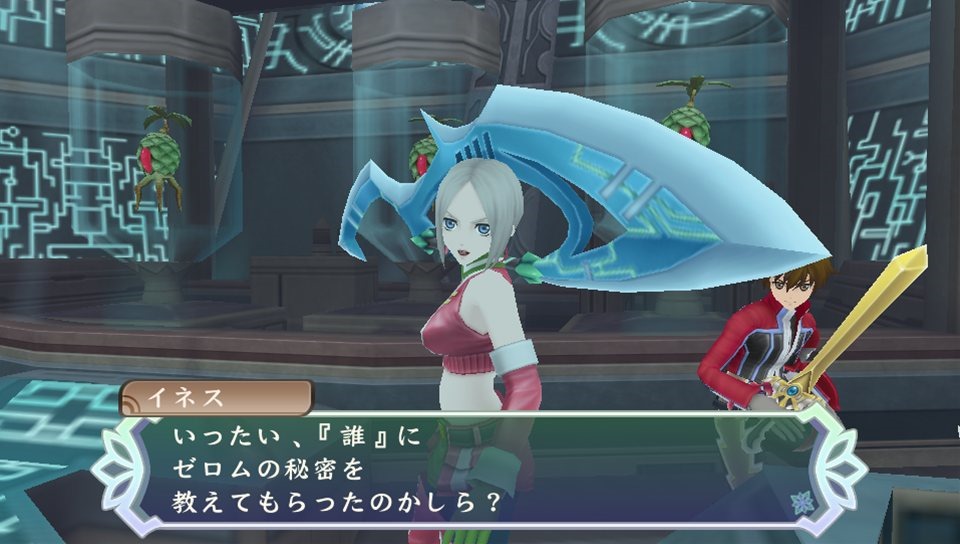 Calcedny Arcome who was a NPC in the DS version is a playable character in Tales of Hearts R. Even when he was a kid, Calcedny was a skilled swordsman. He became the commander of the Crystal Knights and a follower of the Baraya faith.