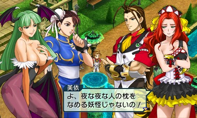 There’s another silly scene between Morrigan and Chun-Li who are partners in Project X Zone and the game’s original characters, Mii and Kogoro. While trying to solve a case, Kogoro spots a beautiful woman up ahead and is shocked when he finds out Morrigan is a succubus!