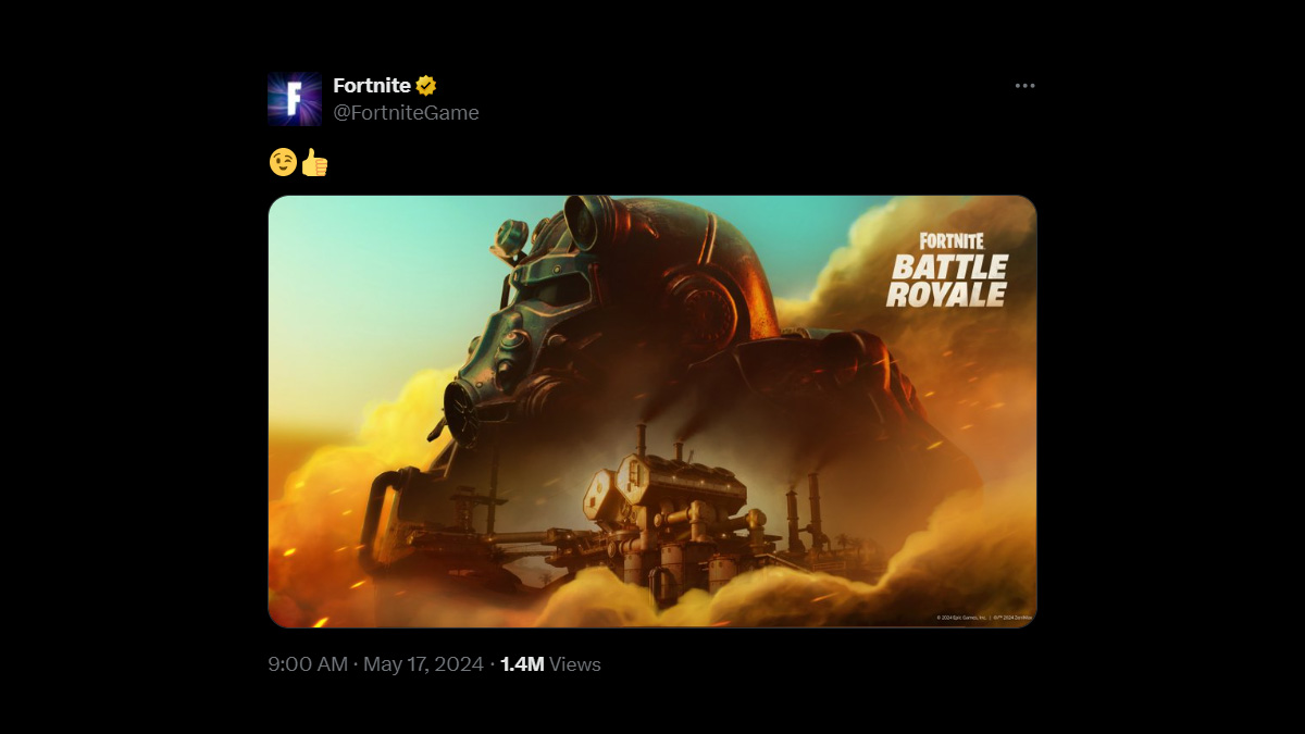 Before we dive into this, it should be stated that Epic Games has not yet confirmed that Fortnite Chapter 5 Season 3 Wrecked will be themed entirely around Fallout. However, on May 17, 2024, the developer tweeted out a teaser picture of the new season, which features the Brotherhood of Steel in front of a post-apocalyptic location.