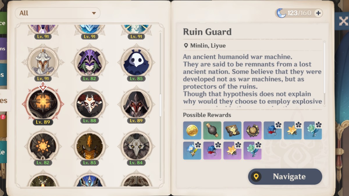 Ruin Graders’ weak spot is their glowing eye, but they’re harder to deactivate. They’re generally a lot harder to defeat and hit a lot harder than Ruin Guards, which makes them one of the most annoying enemies to deal with in Genshin.