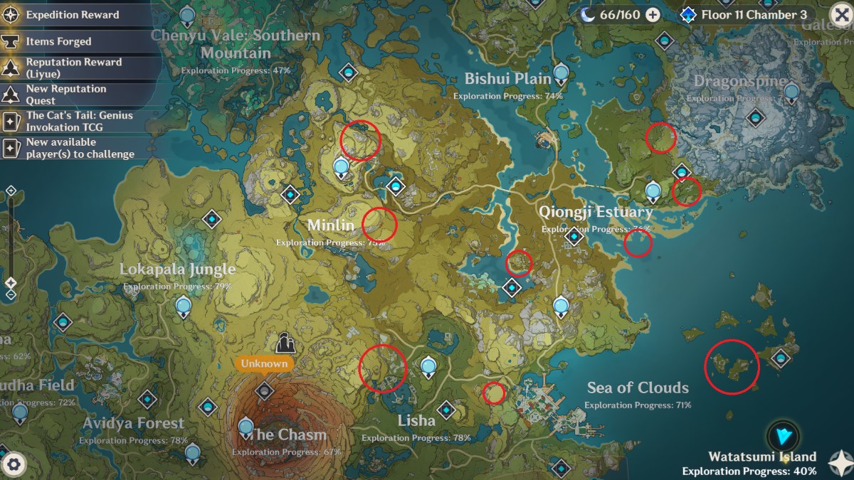 You can find Ruin Machines in Sumeru’s jungles in the spots marked below: