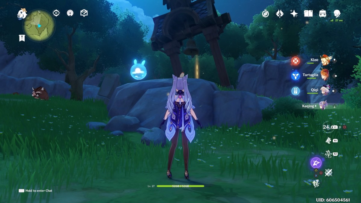 Once you dig at the glowing location, a Challenge marker will appear. At this point, I recommend switching to your Electro or Pyro character. Once you interact with it, one Hydro Abyss Mage and one Cryo Abyss Mage will show up. There’s no time limit to beat them, but you can’t allow yourself to be frozen more than three times. (Fortunately, there are no water sources nearby, but odds are you will still get frozen at least once.) If you have Diluc or Klee, both are very helpful. Having Beidou, Keqing, and Razor in the party is also handy.