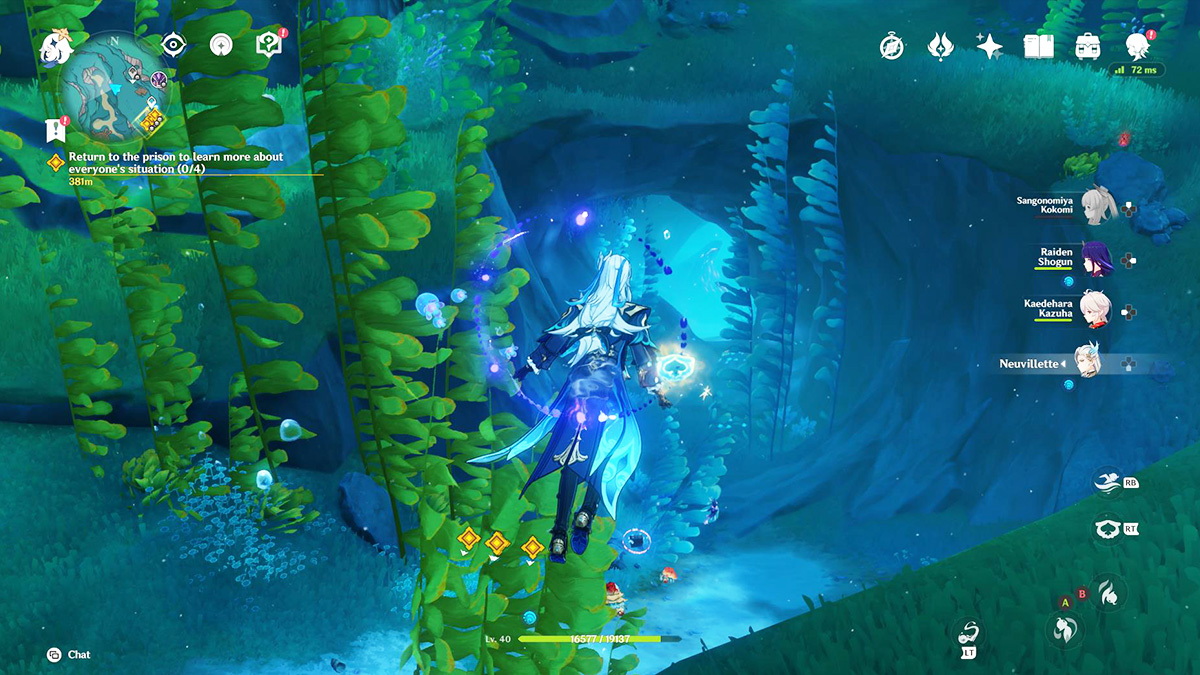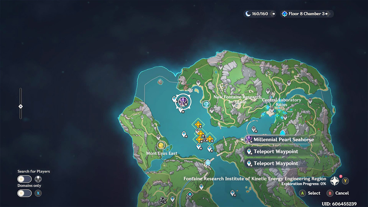 The quickest way to reach the Millennial Pearl Seahorse is to use the Fontaine Research Institute of Kinetic Energy fast travel point. After warping to the location, head east and jump into the ocean. Once you’ve reached the shore, you will have to swim a few feet out before diving underwater.