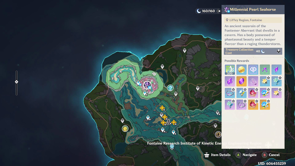 The Millennial Pearl Seahorse is located in an underwater lair west of the New Fontaine Research Institute in Genshin Impact. You will need to head to North Fontaine and dive into the middle of the ocean to reach the giant sea creature.