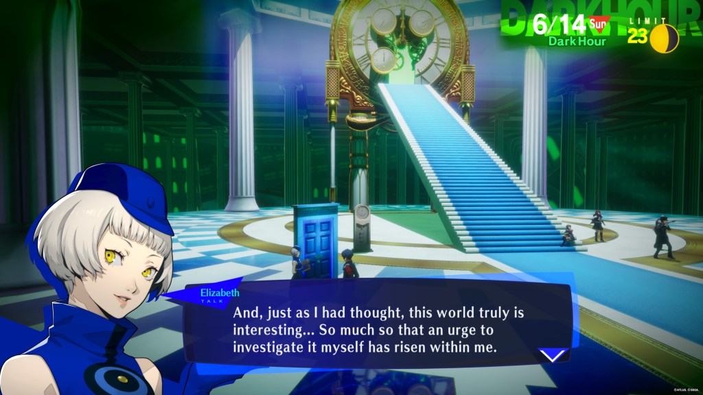If it is any other time of day, however, then you need to head to Paulownia Mall. If you go from the quick movement options via the world map, you can automatically select to even enter the mall at the Velvet Room doorway, so long as you’ve been there once before. When you go into the mall, run all the way to the back to the hallway below the karaoke bar. You’ll see Elizabeth standing there and that familiar door.