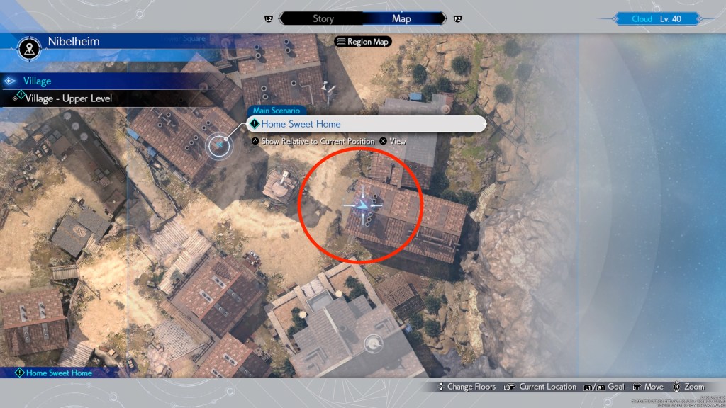 Well, good news! There are only a handful of buildings you can actually enter during this flashback, so you don’t have to look too far for Tifa’s home. In the center of town is the famous water tower. The inn is where you’ll need to head during the Home Sweet Home scenario. Directly across the way from it is where Tifa lives.