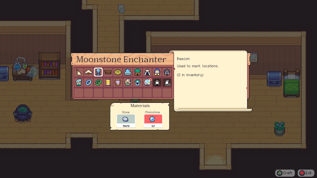 Once you’ve got the blueprint from Zed, a Beacon can be crafted from the Moonstone Enchanter. You’ll need 3 Iron Ingots and a Moonstone.