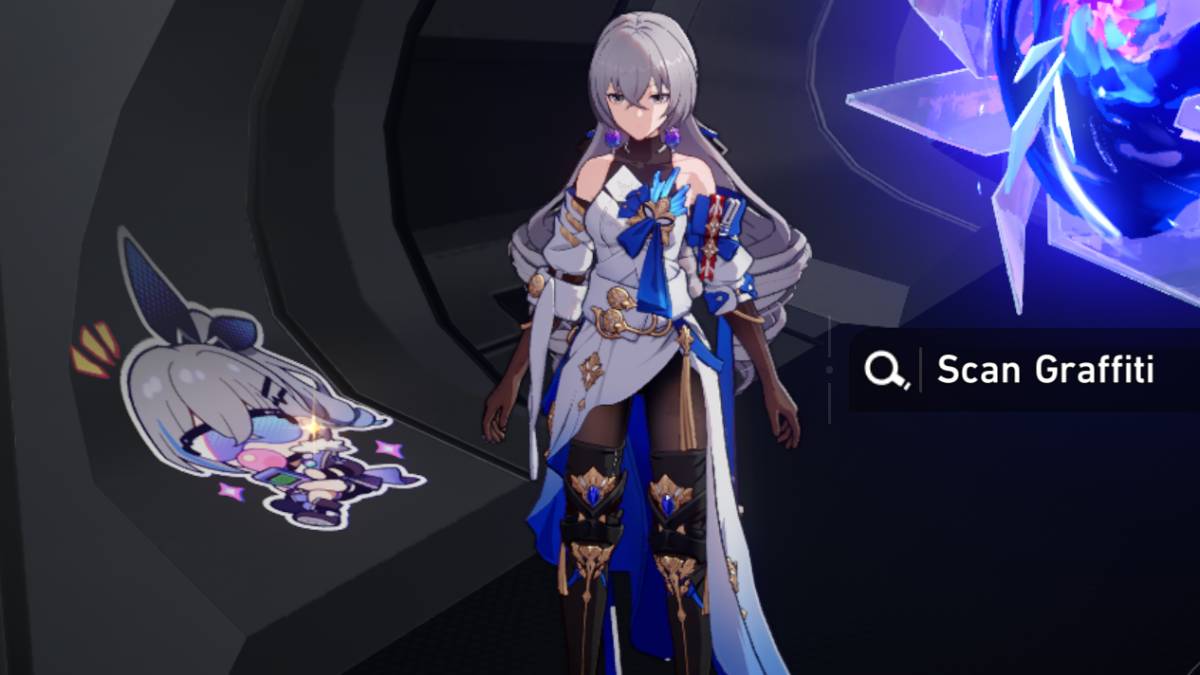 Okay. So first, head to the top of the ramp in Supply Zone at Herta Space Station. Outside the office, there’s a Level 999 graffiti on the right side of the doorway. You can see it below. Interact with it to “capture” it.