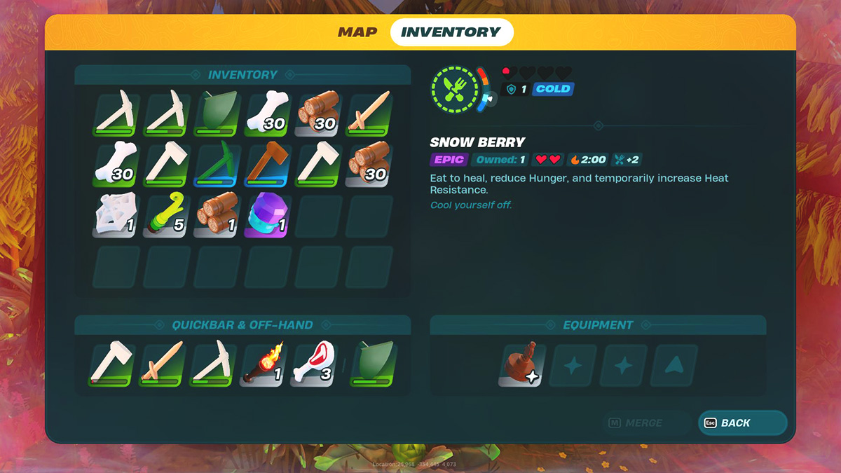 Once you find a Snow Berry, walk up to them and interact with the bush to pick the fruit. You can usually get three to five berries per pick. The heat-resistant item can be found pretty easily in the snow, so you shouldn’t have too much trouble finding them.