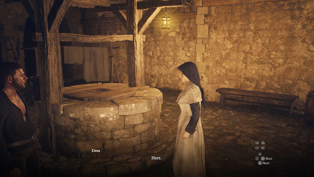 After talking to Bruno and Jehan, they will tell you about Elena’s secret meeting with a strange man at night. Travel to the entrance of The Common Quarter in Vernworth. The location should be marked on your map. You will find Elena talking to a man in front of a closed-off well. Listen to the conversation to progress the quest.