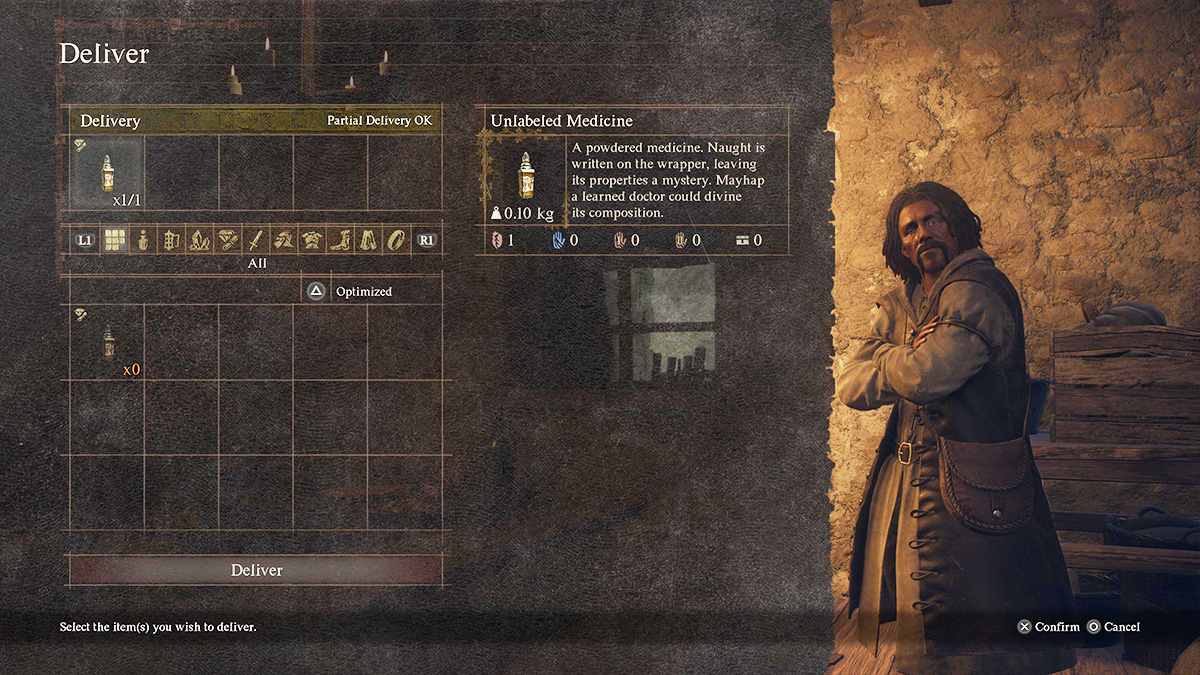 Once you arrive in Rest Town, follow the yellow quest marker on your map to find Radcliff. After you enter his house, give him the Unlabeled Medicine, and he will agree to examine it for you. However, he will say he needs a few days to test it.