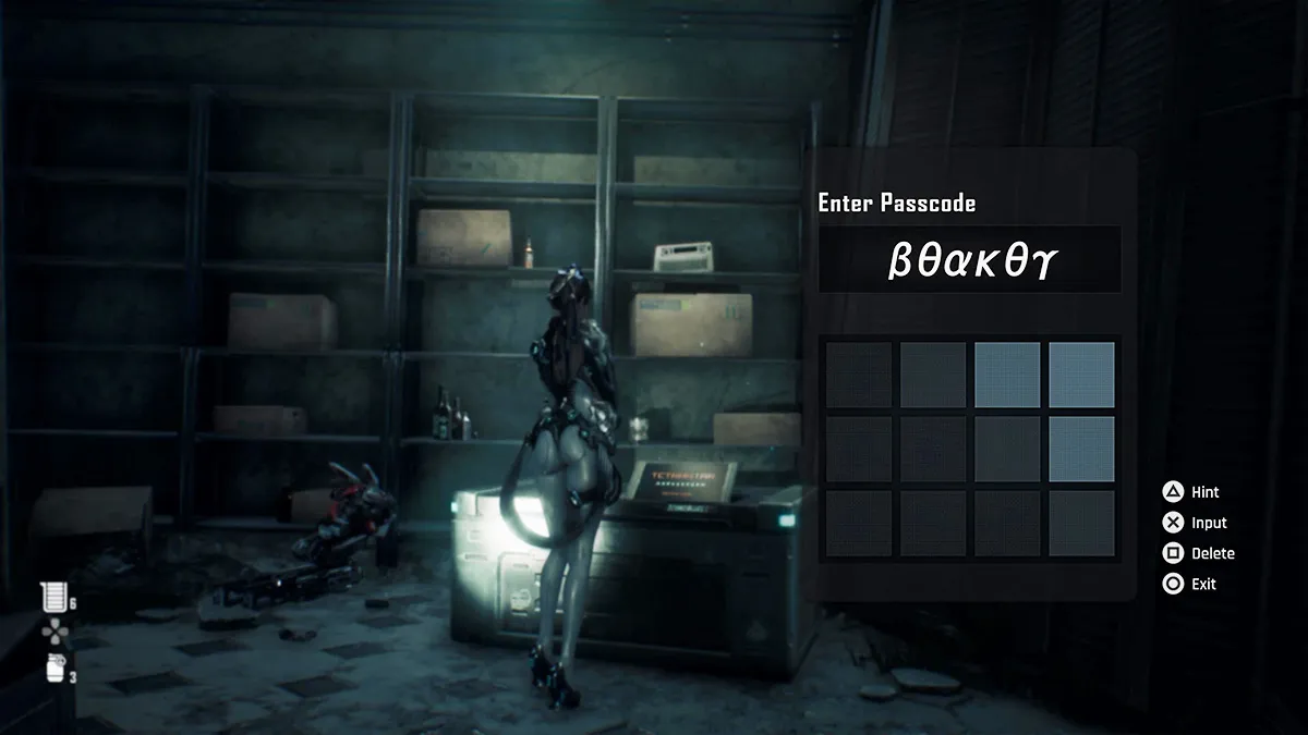 Finally, return to the Barker Drugs store. Be careful, as there are monsters hidden inside of the shop. After you take all the creatures out, interact with the chest and input the passcode βθακθγ. If you don’t remember the password, press “Triangle” on your controller to bring it back up. Congrats, the chest will now open!