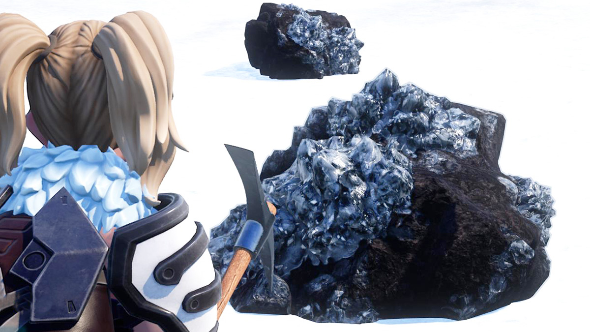 Once you arrive at the Land of Absolute Zero fast travel point, use one of the flying mounts in Palworld and head south down Astral Mountain. After a few feet of flying, you will find a large area of ice with a group of Pure Quartz rocks that can be easily mined.