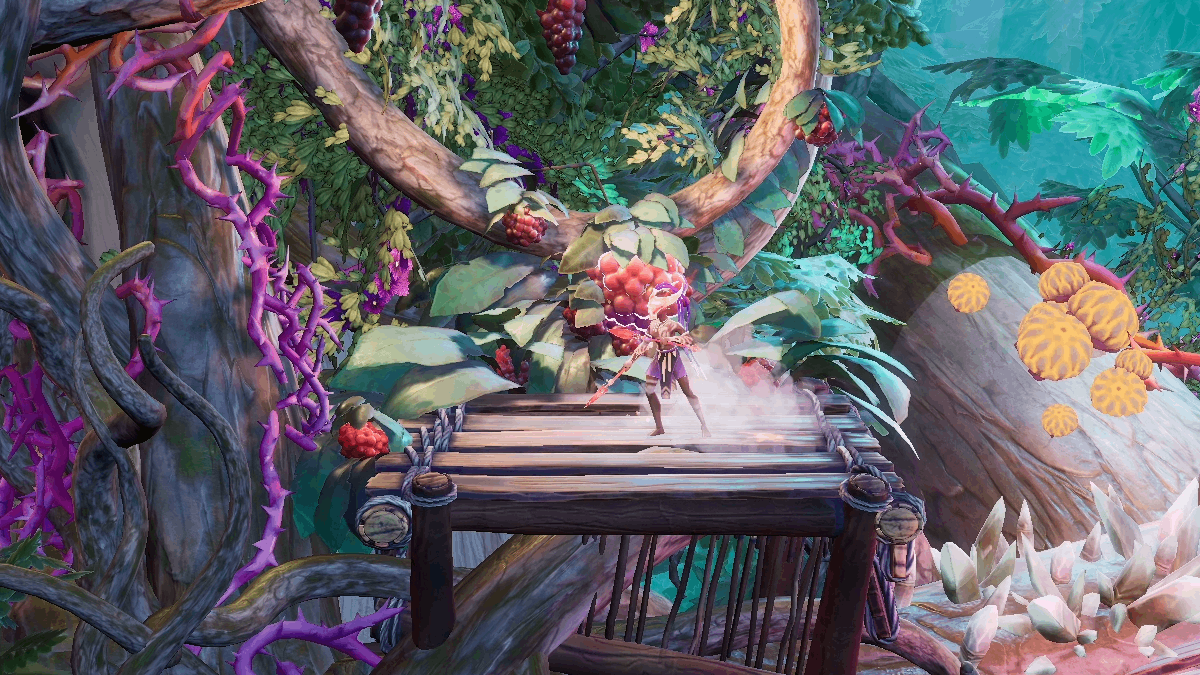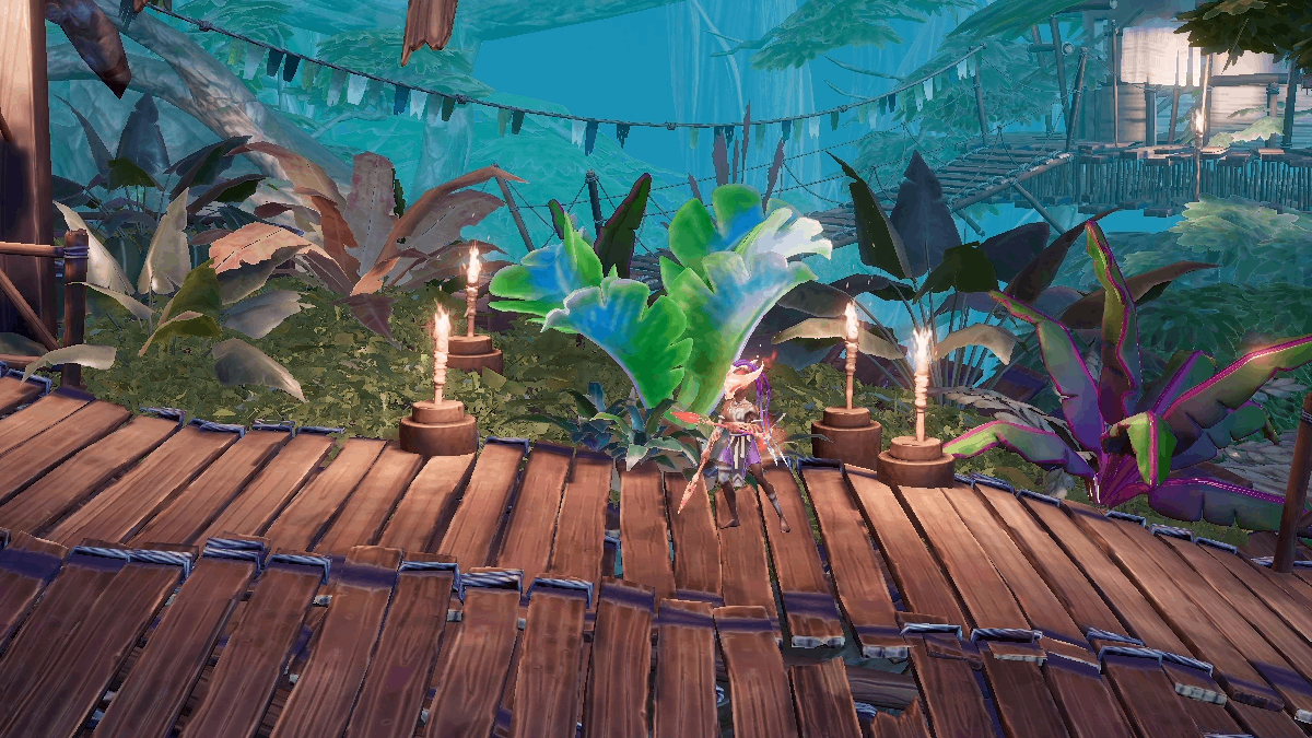 After taking an elevator down, you’ll soon find yourself under a hook that leads upwards to the Fluttering Boughs. While the path is short and mainly consists of using two mushrooms inside spike pits to climb the trees, there is an enemy to watch out for. After the first mushroom, there is a loose plank with a shielded Roho ya Mtupaji immediately after. Try and dodge the other side of it and use your strongest attacks to break its shield quickly.