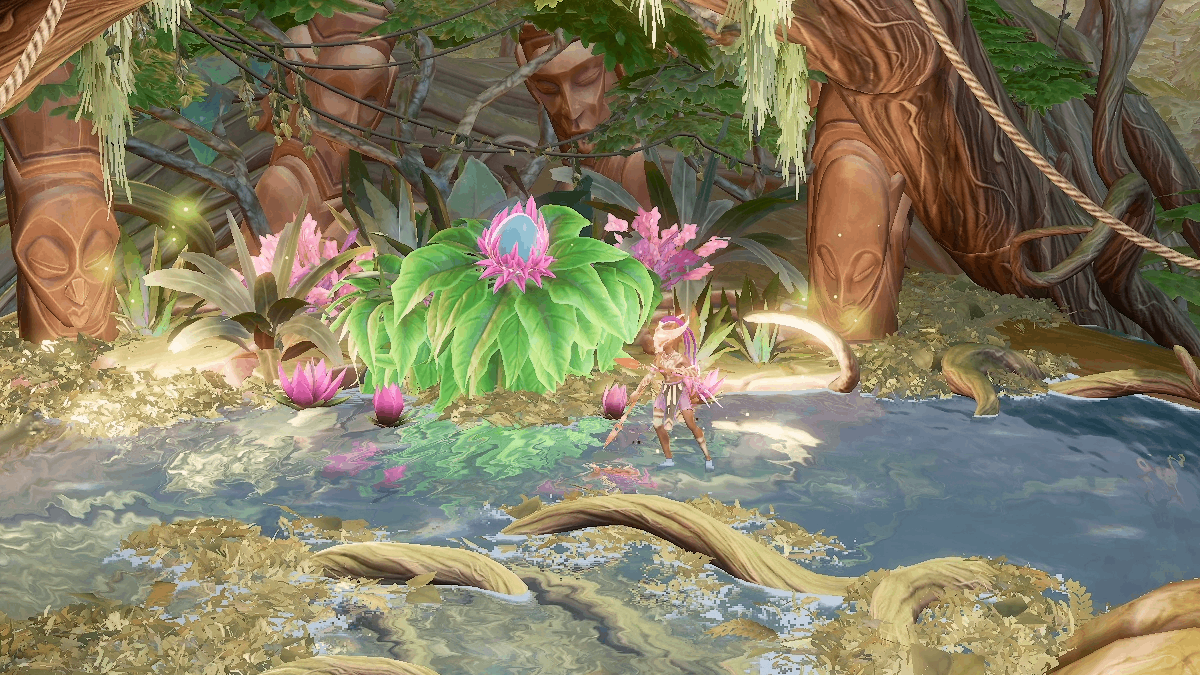 Along the next path, the next spike pit needs to be cleared by dashing over to the far wall, then launching yourself towards the higher wall you passed, and then using that to reach the higher ledge. Then, use another mushroom to clear the next spike pit. Here, you’ll find a grove with the Kifo Flower. After defeating a couple of Roho ya Uwindaji, return to the heart of the village by following the path to the right.