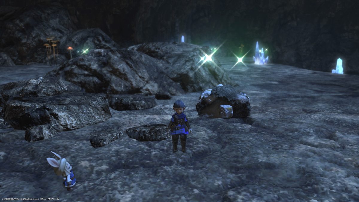 The FFXIV Island Gold Ore location is around X: 22.9, Y: 21.6 within the Mother Lode region inside the Hollow Mountain caves. You want to, specifically, look for the yellowish rocks within this cavern area. Fortunately, this little cave has only two types of mining spots, so it is easy to locate.