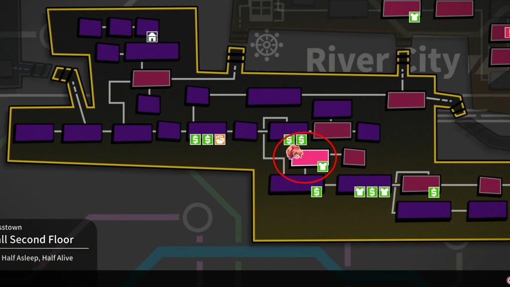 River City Girls 2 selfie quest is located in the mall, on the second floor. Enter the Crosstown mall, and take the exit leading to the escalators. You’ll arrive at an area that’s under construction, with an open pit and an elevator passing through it. The selfie spot is on the wall of the elevator shaft. You’ll need to jump to the spot once the elevator stops in front of the prompt. Watch your vertical movement, as it’s easy to fall down the shaft.