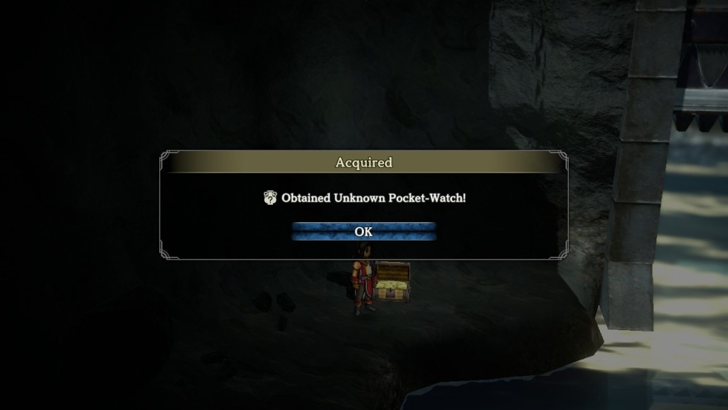 Head inside. The Unknown Pocket-Watch is in the treasure chest I highlighted on the map below. Open the beige chest to get it. You can then take it to Rody or another appraiser to learn it is a Pearl Pocket-Watch.