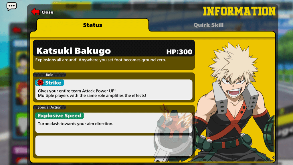 - Katsuki Bakugo: Bakugo is probably the first hero that many fans would think of when considering destructive power, and he lives up to his potential in My Hero Ultra Rumble. His Special Action Explosive Speed combines long-range, mobility, and damage output all together as one. Given his low defensive capabilities, it is best to position him at a distance when dealing damage to foes.