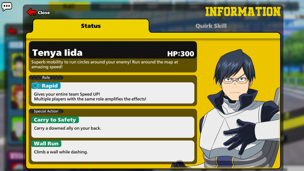 - Tenya Iida: Given the rapid nature of My Hero Ultra Rumble, having a speedster like Iida on your team is a must. While he uses close-range attacks, he more than makes up for this by his ludicrous ability to speed across the arena and even travel up walls. Additionally, he can carry downed allies to safety using his Special Action, giving him an added element of support.