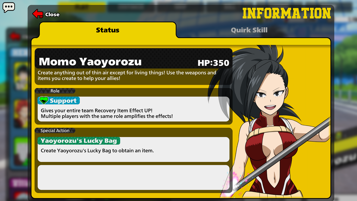 - Momo Yaoyorozu: As items can make or break a team in My Hero Ultra Rumble, a character with the ability to produce them will invariably be a powerful asset in any battle. Her Lucky Bag allows her to generate a random item such as a skill card or healing item, which can provide a quick advantage. Adding to that, her basic abilities provide a strong defense for your team thanks to her shield, while her cannon offers up a strong offensive attack