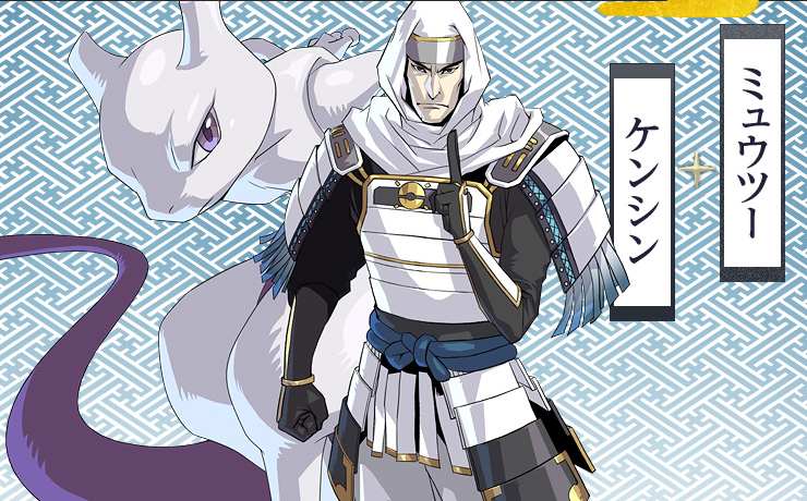 Kenshin Uesugi rules the Echigo region and considers Shingen one of his major enemies. He has a cold personality and doesn’t show emotion. (He has a stoic countenance to match.) Mewtwo is his partner in Pokémon + Nobunaga’s Ambition.