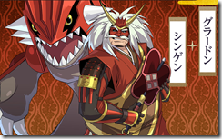 Shingen Takeda is the cheerful daimyo ruler of the Shinano region. He’s known to be a tactician in battle and considers Kenshin Uesugi one of his major rivals. Groudon fights by his side in Pokémon + Nobunaga’s Ambition.