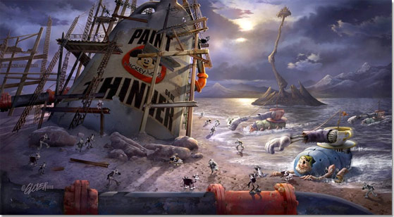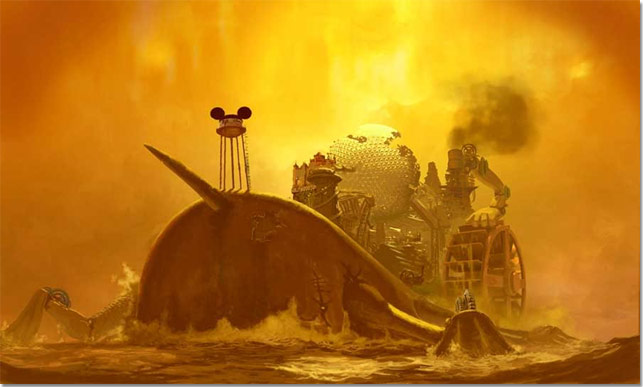 Gamasutra was the first site to make any actual headway in peeling away the layers that surrounded this mysterious game. Toward the end of the year, being privy to a gallery of leaked concept art, Gamasutra confirmed that such a project was, at the very least, in pre-production at Junction Point. It was codenamed “Epic Mickey” and — judging by the concepts they had seen — it involved a surreal, steampunk-esque reinterpretation of the Disney universe.