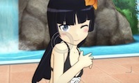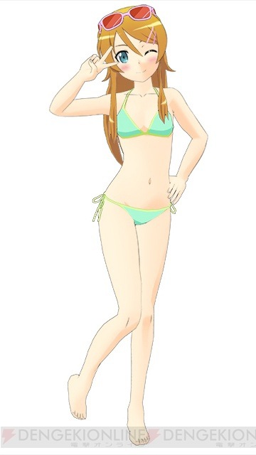 After some consideration, Kyousuke picks Kirino (we’re not sure what happens if you pick Kuroneko). Kyousuke’s response leads to some typical bickering, and eventually, he says to Kirino, “If you become an idol, I’ll be your manager, servant, or whatever.” A while later, Kirino gets a letter in the mail declaring that she passed the audition. That may not be the Earth-shattering revelation you were hoping for, but along with some info on the story, here are some screenshots of Kirino and Kuroneko in swimwear.