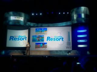 Wii Sports Resort has the Wii remote upgrade with 1:1 motion control. Were watching a disc throwing game with a dog. A jet ski game uses the remote and nunchuck combo. It looks a theme is a day at th beach. The third game is sword dueling.
