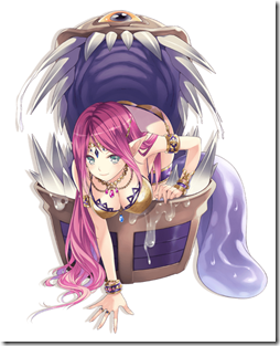 Mimic specializes in mimicking, as her name implies. She likes to chomp on the hands of adventurers that mistake her as a treasure chest. As she says, “pretty roses have thorns, right? Well, attractive treasure chests have fangs. You better remember that.” Hobby: nice and slimy things Favorite things: yam, eggplant You can check out the other monster girls on this page. Simply click on the picture of your favorite monster girl, then press the button on the bottom, and the button on the right after that to confirm and submit your vote. The character voting will go on from August 11th until September 24th, and you’ll get to vote once per day. Moero Crystal will release in Japan on September 25, 2015 for PlayStation Vita.
