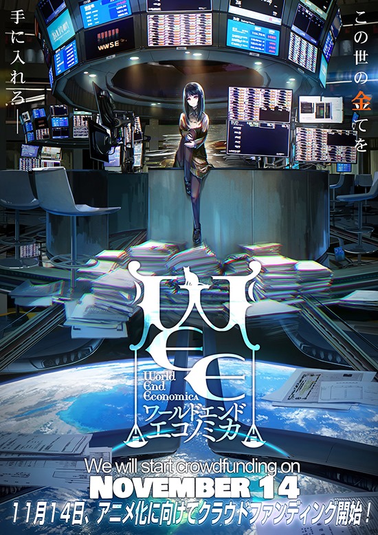 Today, SpicyTails announced that they will be beginning a crowdfunding campaign for their economics-themed visual novel series World End Economica on November 14, 2019. Check out the main visual, drawn by Harutoshi, below: