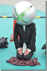Instead of using Master Chief, Microsoft created a character to promote the Xbox 360 in Japan. San Roku Maru (Japanese for 360) is part of the Xbox Mission Division, a group that wheels and deals with video game characters to bring them to the Xbox 360. The Mission Division stars in shorts like this one for the Idolm@ster 2.