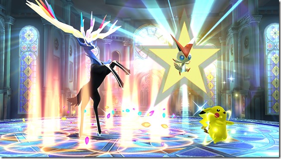 Super Smash Bros. director Masahiro Sakurai has shared details on two of the legendary Pokémon that have a possibility of popping out when you use a Poké Ball—Xerneas and Victini. “Victini and Xerneas are both support Pokémon,” Sakurai said on Miiverse. “Victini’s Victory Star boosts the attack of whoever throws the Poké Ball, and also prevents flinching.” Meanwhile, “Xerneas’s Geomancy increases the launch power of all fighters, but exceptionally raises it for whoever had the Poké Ball.”