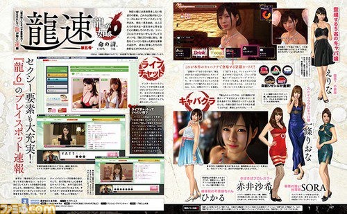 We got a peek at Yakuza 6’s new “Live Chat” feature that will let Kiryu go online to chat with cam girls in the upcoming game. Here are additional details on the game’s features from this week’s issue of Famitsu magazine. [Thanks, Hachima.] Live Chat: A new way to play at a net cafe. The conversations with cam girls get more exciting as you precisely enter the right buttons as responses during the chat. Cabaret Club: This time around, the Cabaret Club has evolved into a strategic card game that features 83 different topic cards. By getting a girl excited enough, there’s a special something that awaits at the end. Below is a look at the regular Play Spots that have been “powered up”: