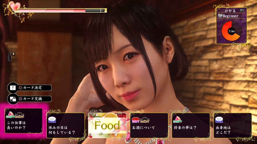 There are more cards other than “Conversation” cards. This time, you’ll also have access to “Drink” and “Food” cards. By choosing the ideal cards, it’ll increase the “Tension” of the girls. The Tension meter goes up depending on the type of cards you use, and the conversation that follows. Choosing the right “Conversation” cards for various girls is a given, but you can add to it using Drink and Food cards to add more of a festive mood. If you can show her a good time by playing your cards right, you’ll get closer to the girl.