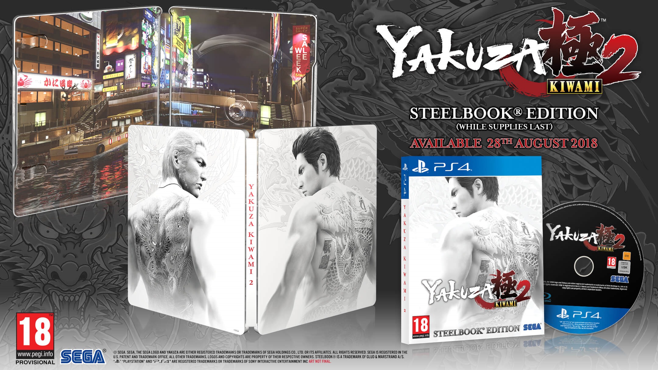 Sega announced today that Yakuza Kiwami 2, the PS4 remake of Yakuza 2, will release in the Americas and Europe on August 28 with a special first-print SteelBook similar to Yakuza Kiwami before it. Here’s a look at the announcement trailer: