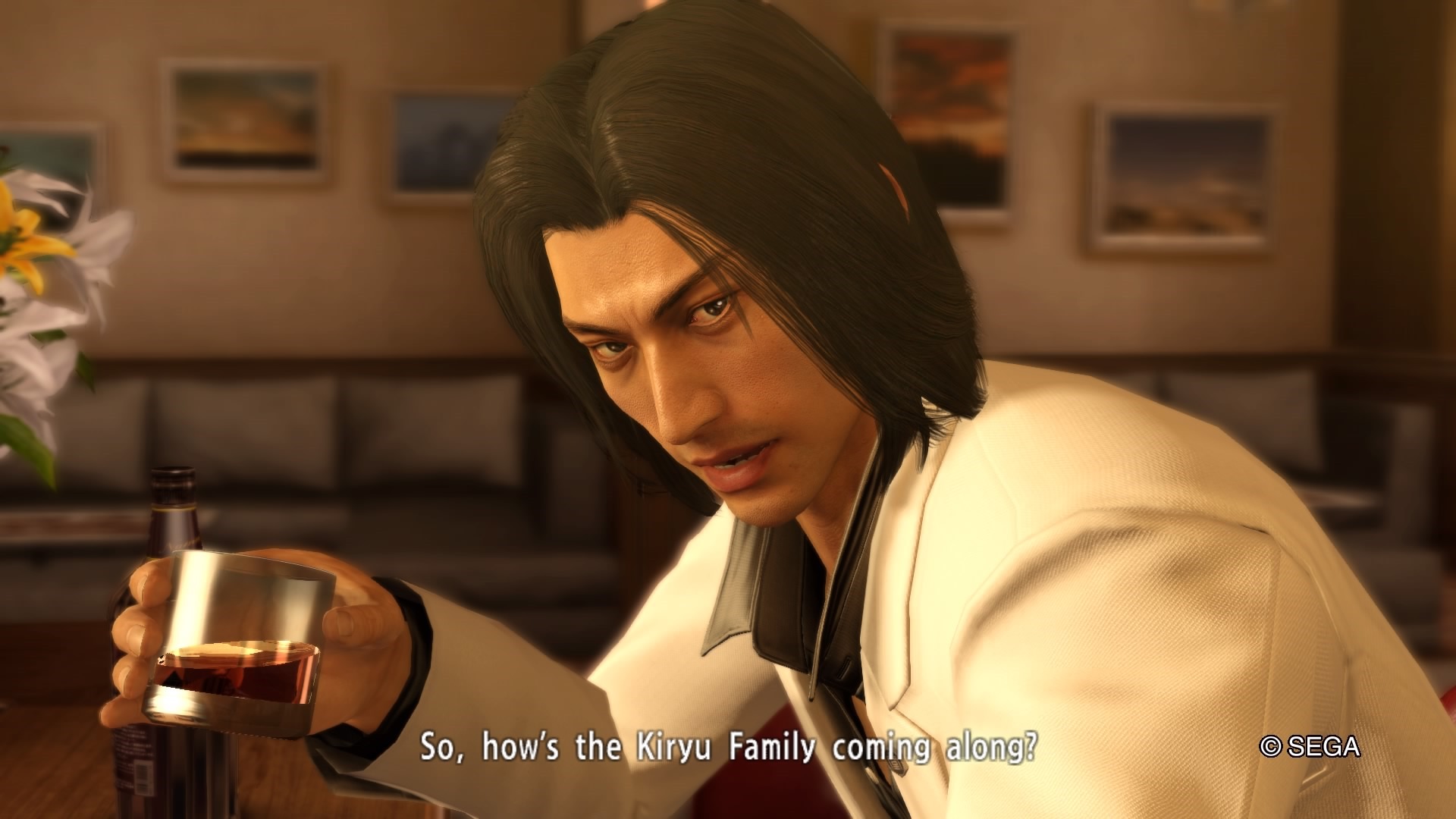 Kazama’s introduction is just as effective. He’s established first as the Kazama family Patriarch. Unless you’ve really been following the series, you won’t really know immediately that he was essentially Kiryu, Nishikiyama, and Yumi’s father. But the moment he speaks to Kiryu off the record, you know. He is all business when Osamu Kashiwagi is there, but immediately drops honorifics and speaks to Kiryu as though he is family once the other man leaves. When a man comes in saying Nishikiyama and Yumi are in the middle of a capital “S” Situation, he tries to be the voice of reason. He tries to protect his son, saying he should let the other two deal with things on their own. That Kiryu leaves speaks to his character as a devoted sibling, but perhaps also as a headstrong surrogate son.