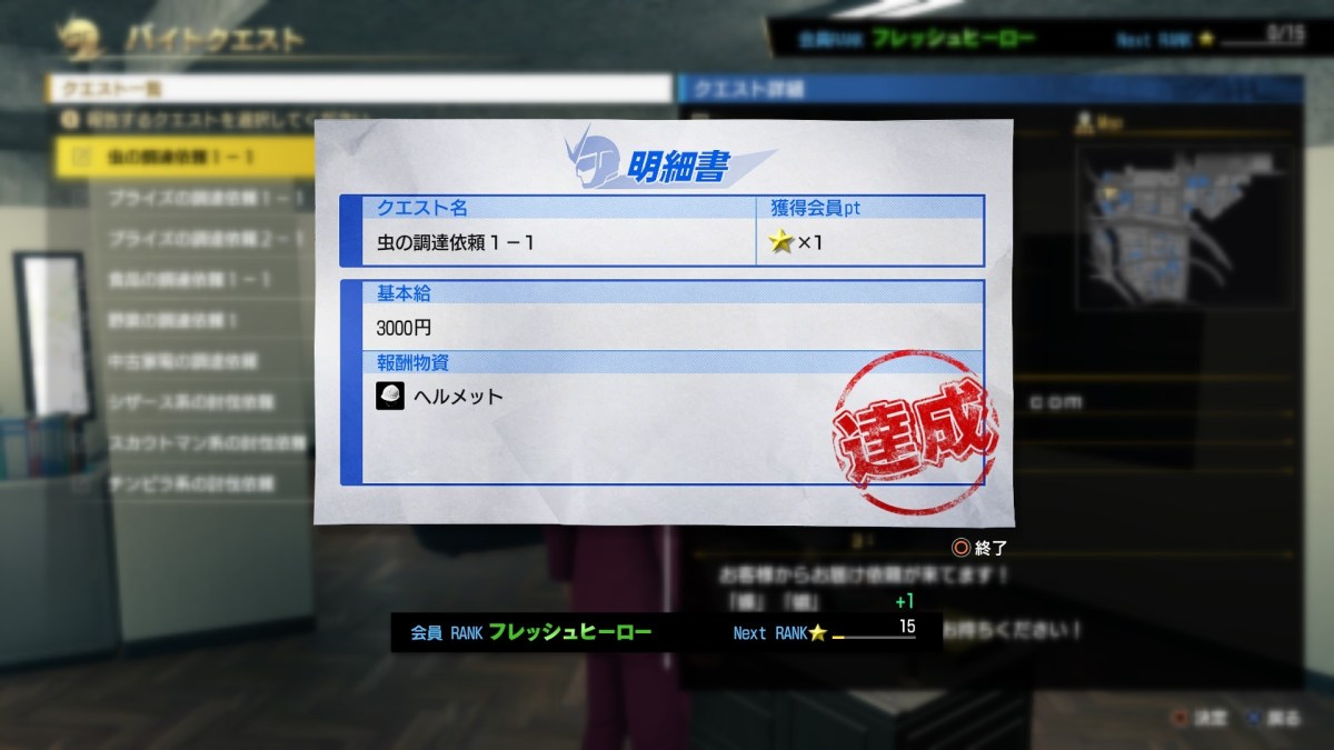 At a certain point in the story, Kasuga will get to know a certain ‘Part-time Hero’ who works with the website PartTimeHero.com. It acts like a quest board in other RPGs, where you can take upon requests, ranging from finding lost cats to fending off unruly people from the neighborhood. By completing these quests, you earn Member Points that will rank up your Member Level, which will reward you with strong items, and allow you to take upon stronger quests. Quests are split into Support (finding cats or lost people, and other tasks that involve running around town), Rescue (which involves fighting some enemies), and Challenge (reach a certain amount of Human Power levels) types.