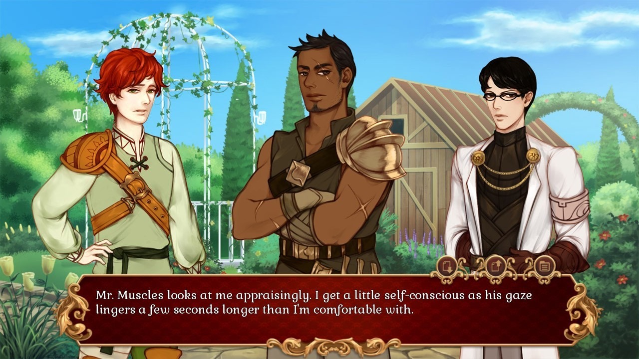 Heirs and Graces gives players four options of who they wish to romance, letting them flirt with “an ex-gladiator turned gardener, a perfectionist butler, the local doctor, or a mischievous elven Lord.” To get the man they want, players will have to build up stats, as some scenes will have different outcomes depending on skill checks based on their stats.